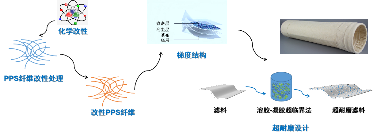 • 改性PPS纖維:通過對纖維進行改性處理改善其拉伸性能,進而使濾料具有優(yōu)異的斷裂強力和斷裂伸長率;