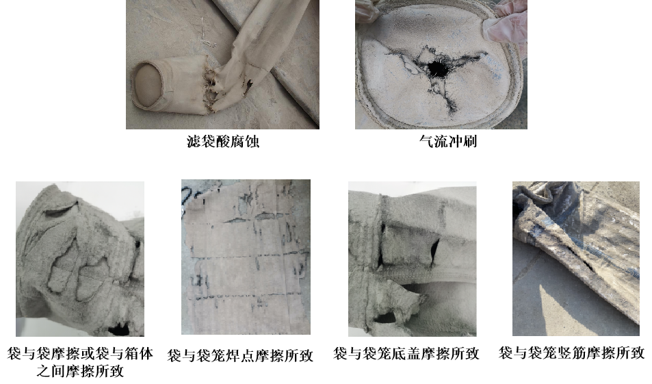 濾袋在運行過程中發(fā)生破損的原因有化學損傷(酸堿腐蝕、氧化和水解等)、氣流沖刷(袋內(nèi)和袋外)和機械摩擦等。