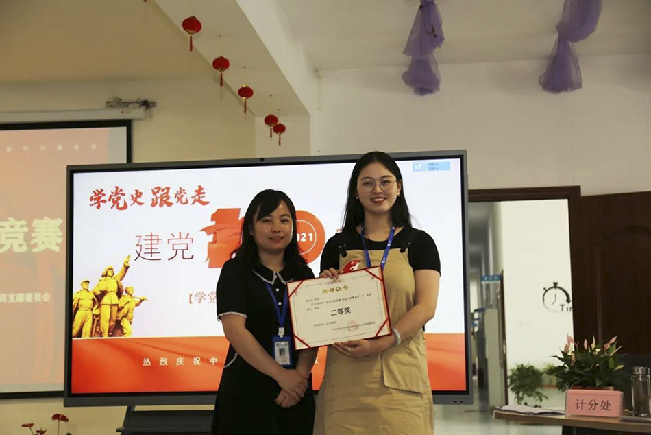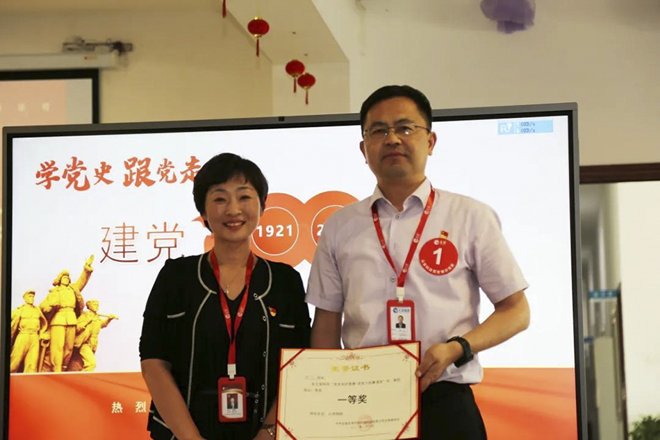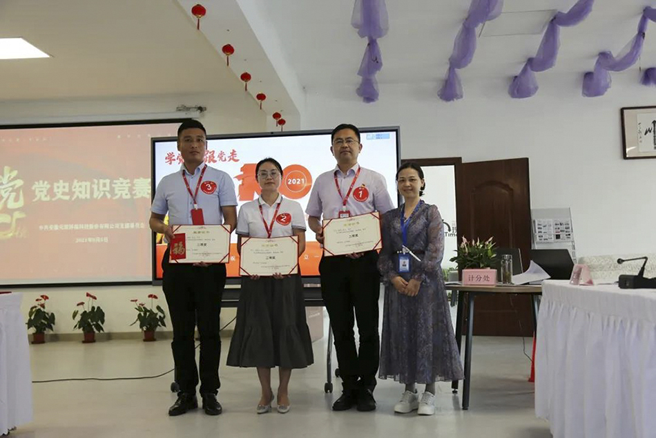 支部書記、總經(jīng)理梁燕同志致辭。她首先祝賀獲獎團(tuán)隊和優(yōu)秀個人,對各位參賽選手沉著應(yīng)戰(zhàn)、賽出風(fēng)格、賽出水平、賽出成績、勇奪桂冠表示祝賀,勉勵他們再接再厲,繼續(xù)發(fā)揚先鋒模范作用。同時,她指出,舉辦黨史知識競賽目的是引導(dǎo)廣大黨員回顧中國共產(chǎn)黨從成立到發(fā)展到壯大的歷程,增強對黨的歸屬感和認(rèn)同感。她希望全體員工要倍加珍惜當(dāng)前工作、學(xué)習(xí)、生活環(huán)境,要在黨史學(xué)習(xí)教育中學(xué)有所成、學(xué)有所獲,不斷提升自己黨史理論修養(yǎng),吸取智慧和力量,增強榮譽感與責(zé)任感,在自己的工作崗位上,貢獻(xiàn)自己的力量和智慧,以實際行動助推企業(yè)高質(zhì)量發(fā)展。